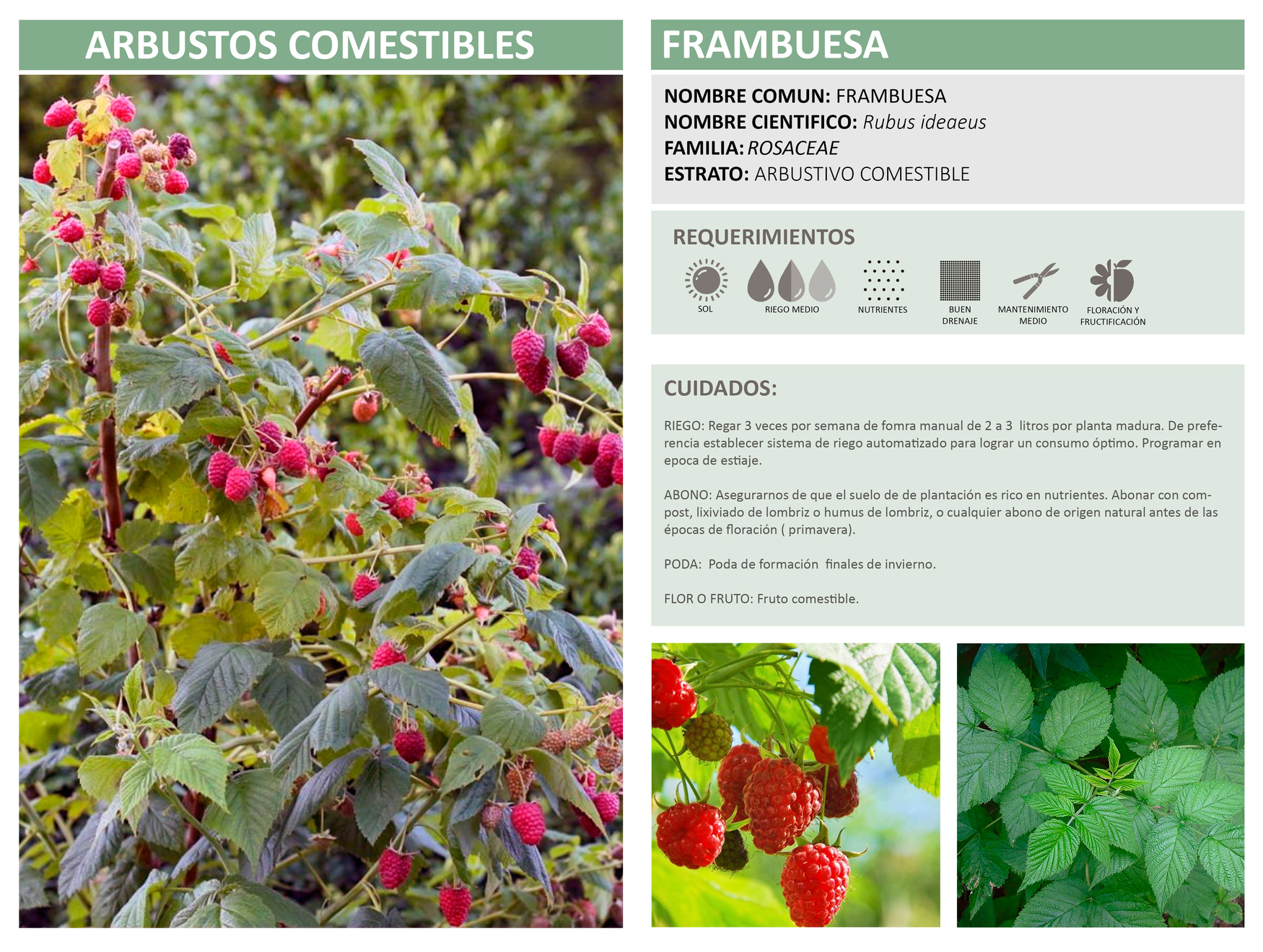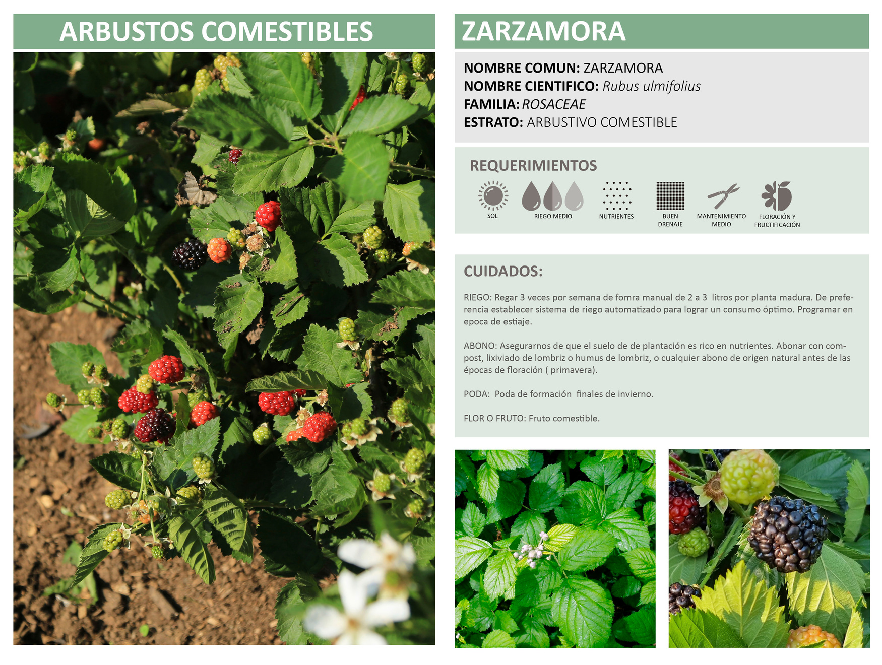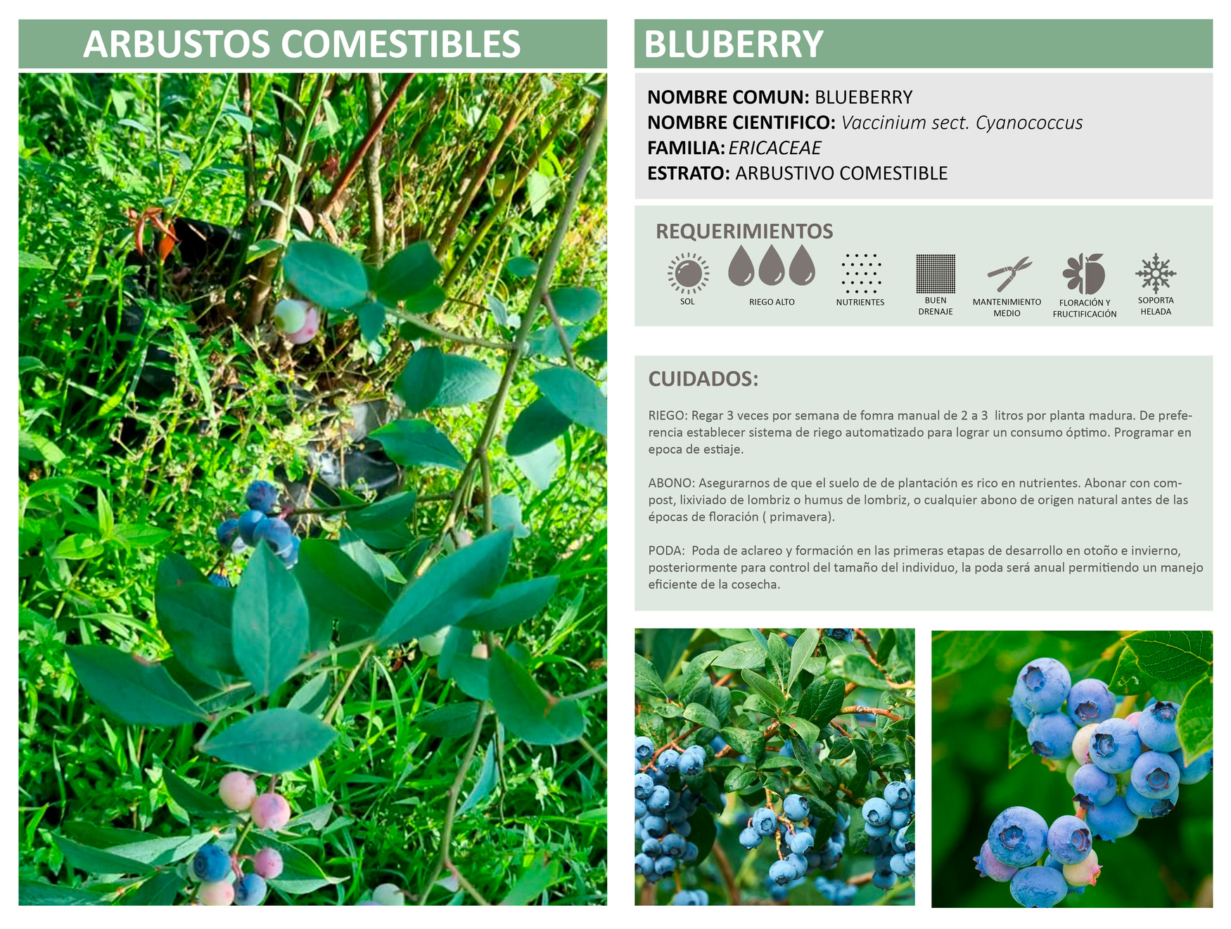 ABONO: A la plantación asegurarnos de usar una composta rica en nutrientes, posteriormente aplicar abonos orgánicos en el inicio de la floración (primavera).