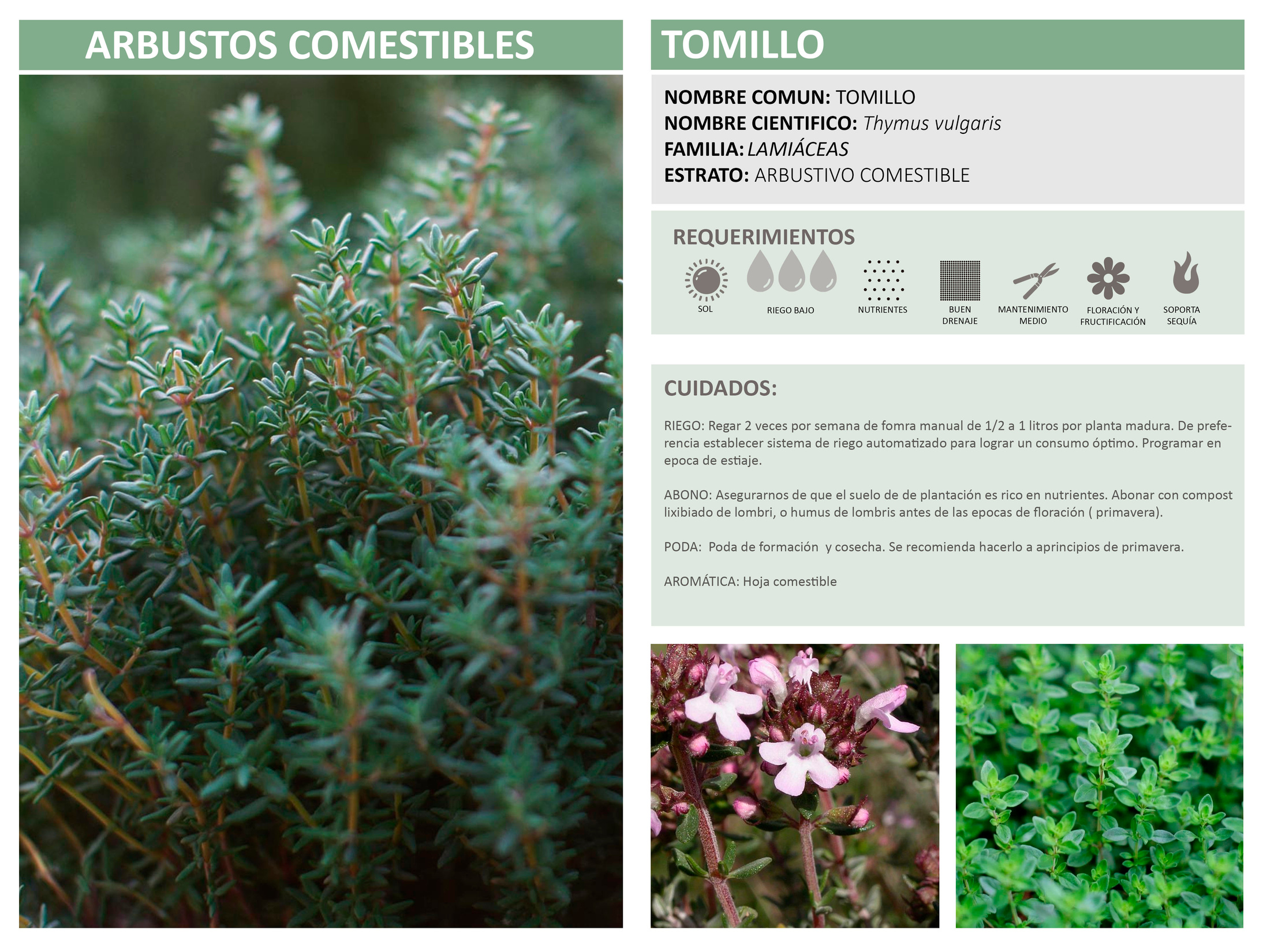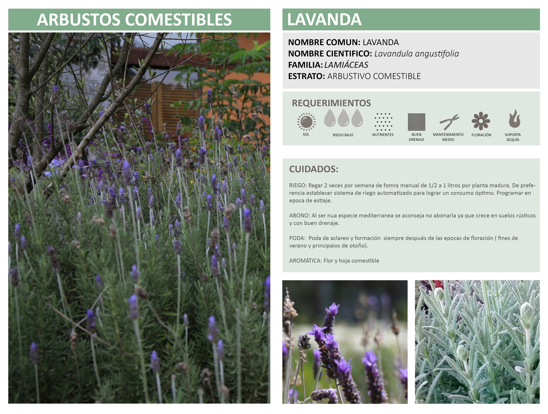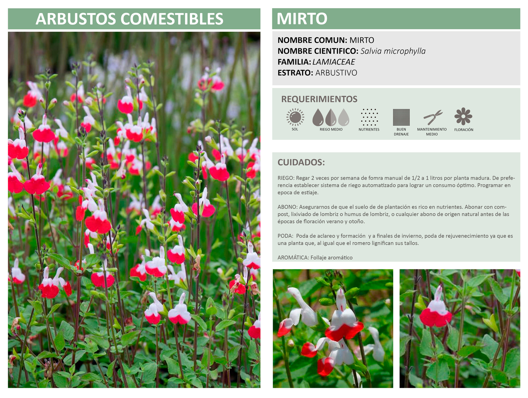 ABONO: A la plantación asegurarnos de usar una composta rica en nutrientes, posteriormente aplicar abonos orgánicos en el inicio de la floración (primavera).