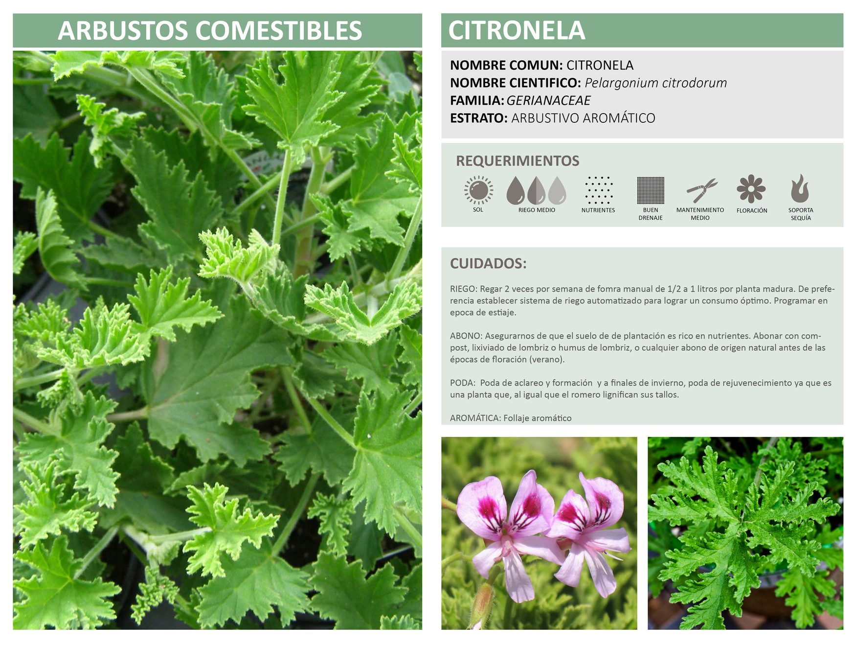 RIEGO: Regar 3 veces por semana de forma manual. De preferencia establecer sistema de riego automatizado para lograr un consumo óptimo. Programar en época de estiaje.